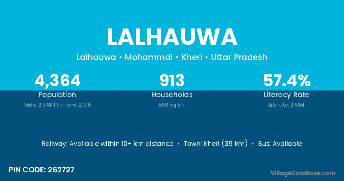 Kheri (39 km) is the nearest town to Lalhauwa village for major economic activities and is located approximately 39 km away.