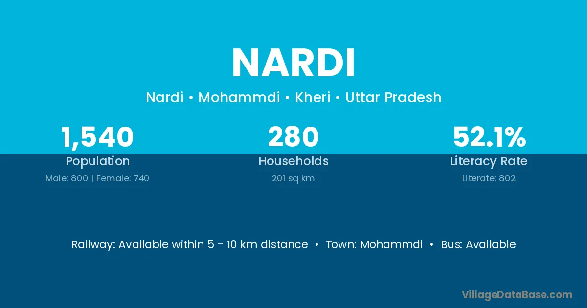 Nardi village is located in the Mohammdi Tehsil of the Kheri district in Uttar Pradesh .
