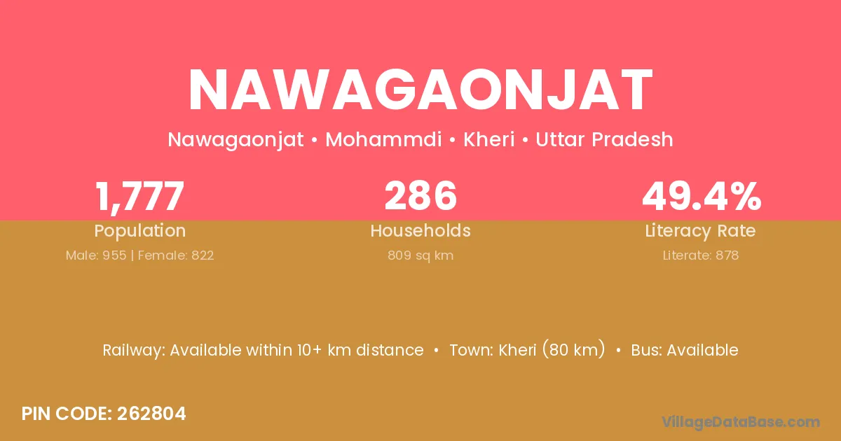 Kheri (80 km) is the nearest town to Nawagaonjat village for major economic activities and is located approximately 80 km away.