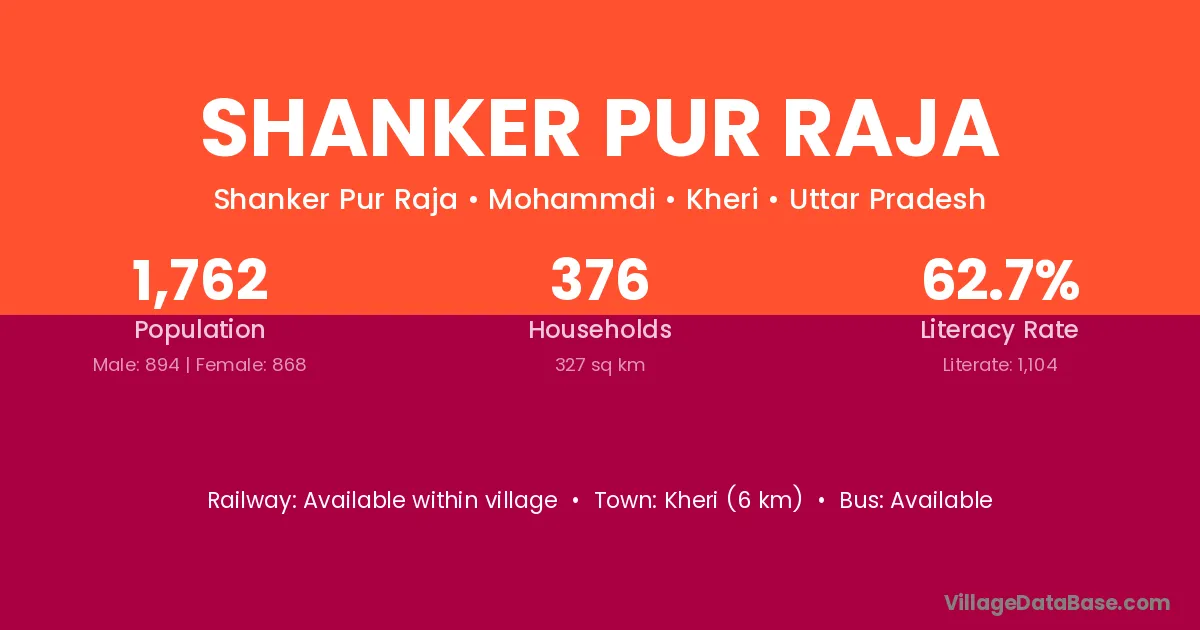Shanker Pur Raja village has a total population of 1,762 people, of which 894 are males and 868 are females.