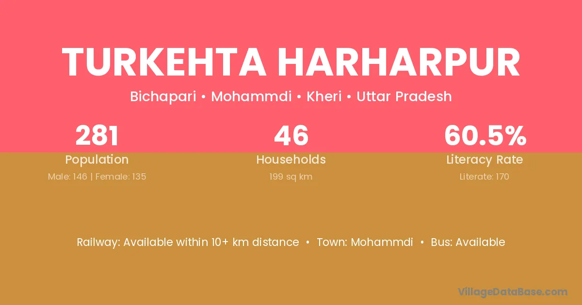 Turkehta Harharpur village has a total population of 281 people, of which 146 are males and 135 are females.