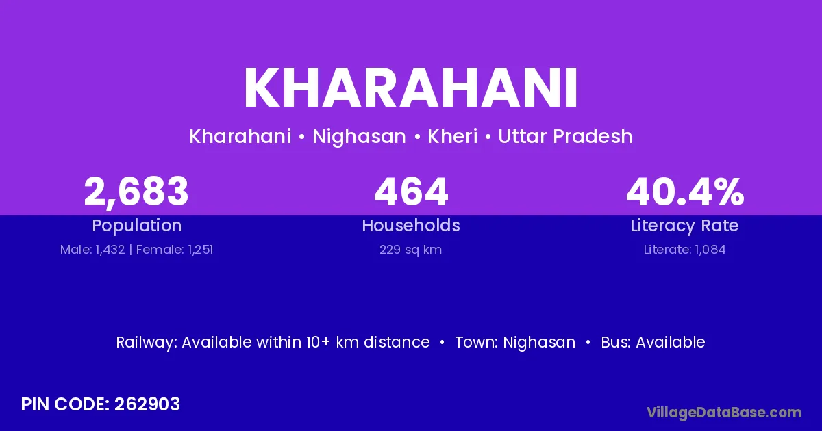 Nighasan is the nearest town to Kharahani village for major economic activities
