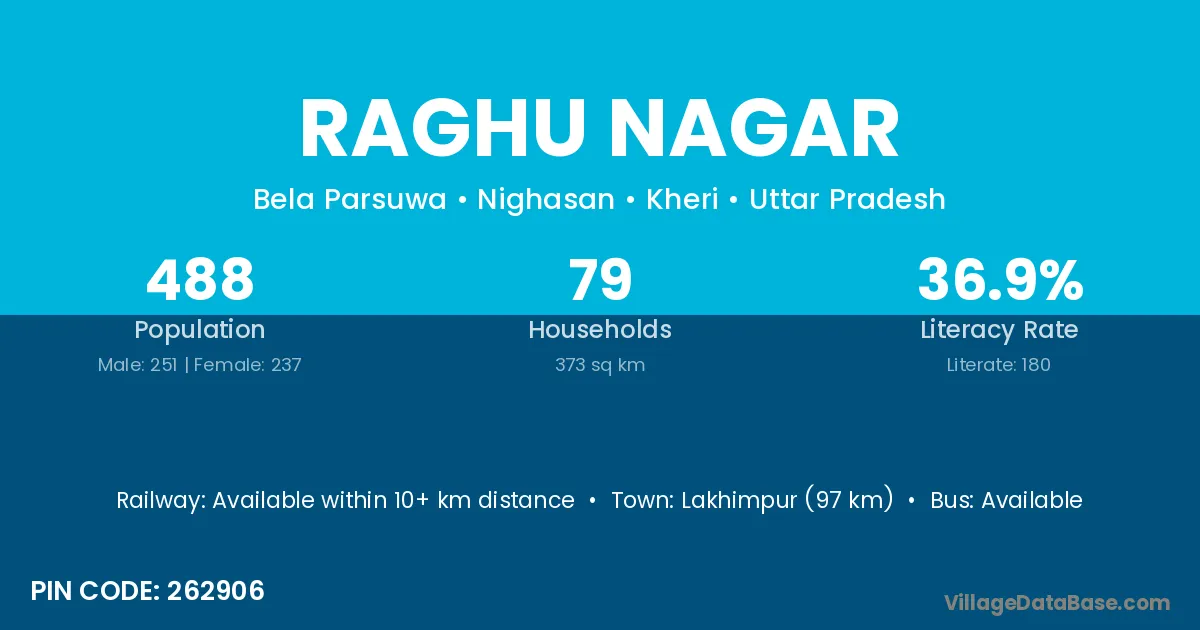 Lakhimpur (97 km) is the nearest town to Raghu Nagar village for major economic activities and is located approximately 97 km away.