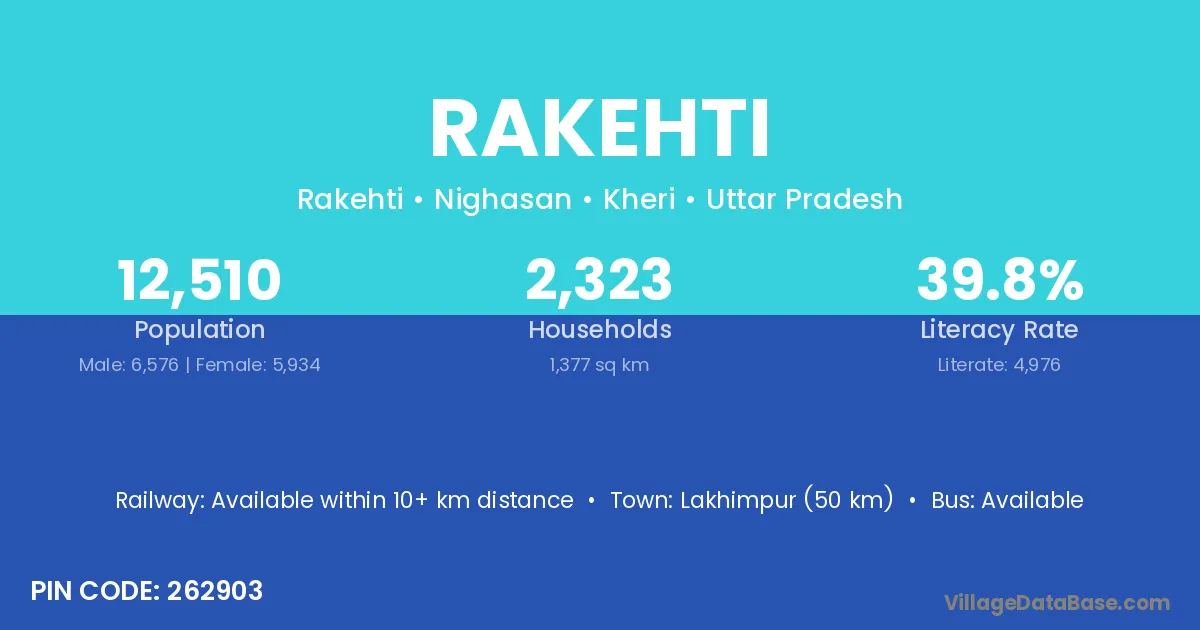 Lakhimpur (50 km) is the nearest town to Rakehti village for major economic activities and is located approximately 50 km away.
