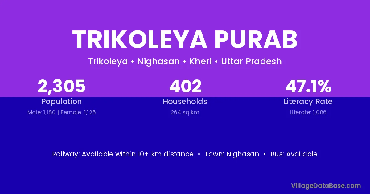 Nighasan is the nearest town to Trikoleya Purab village for major economic activities