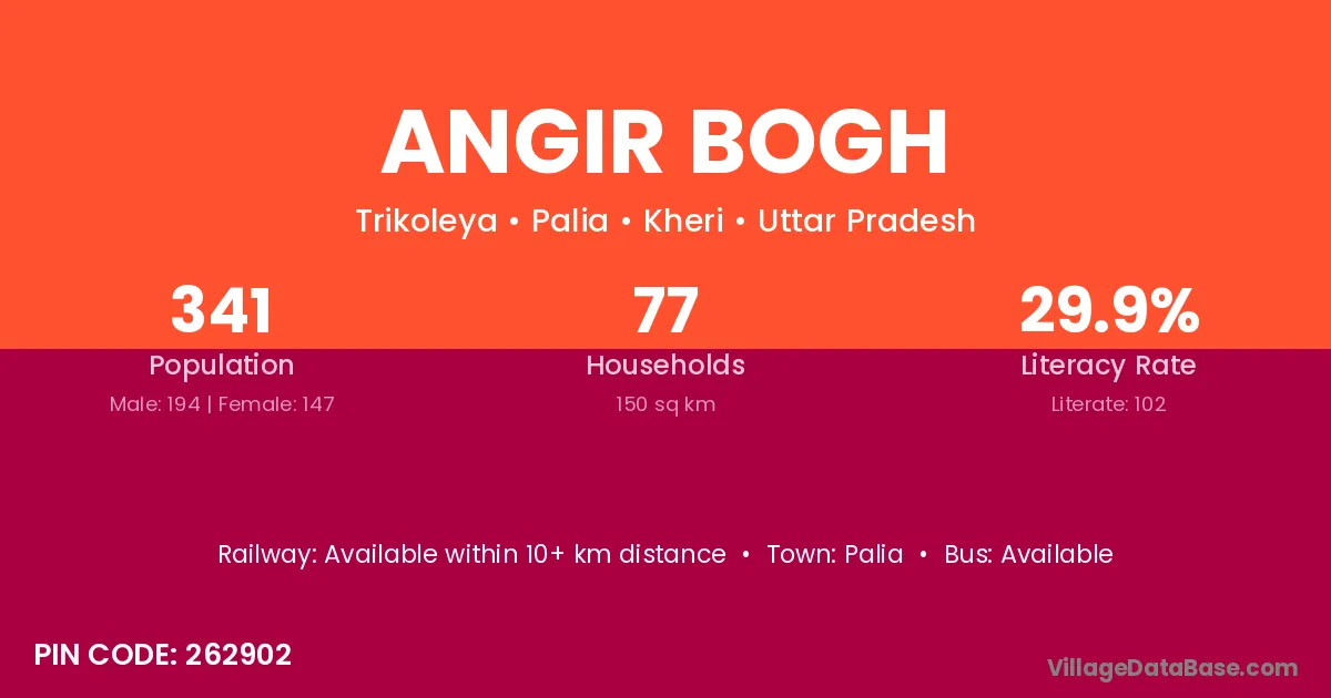 Palia is the nearest town to Angir Bogh village for major economic activities