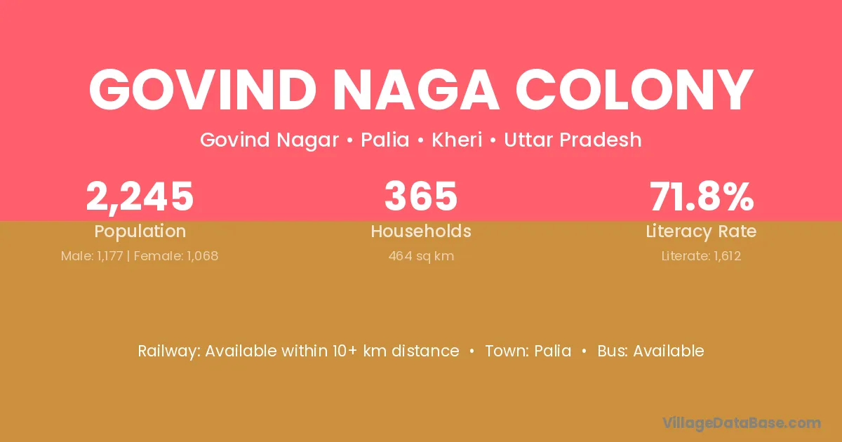 Palia is the nearest town to Govind Naga Colony village for major economic activities