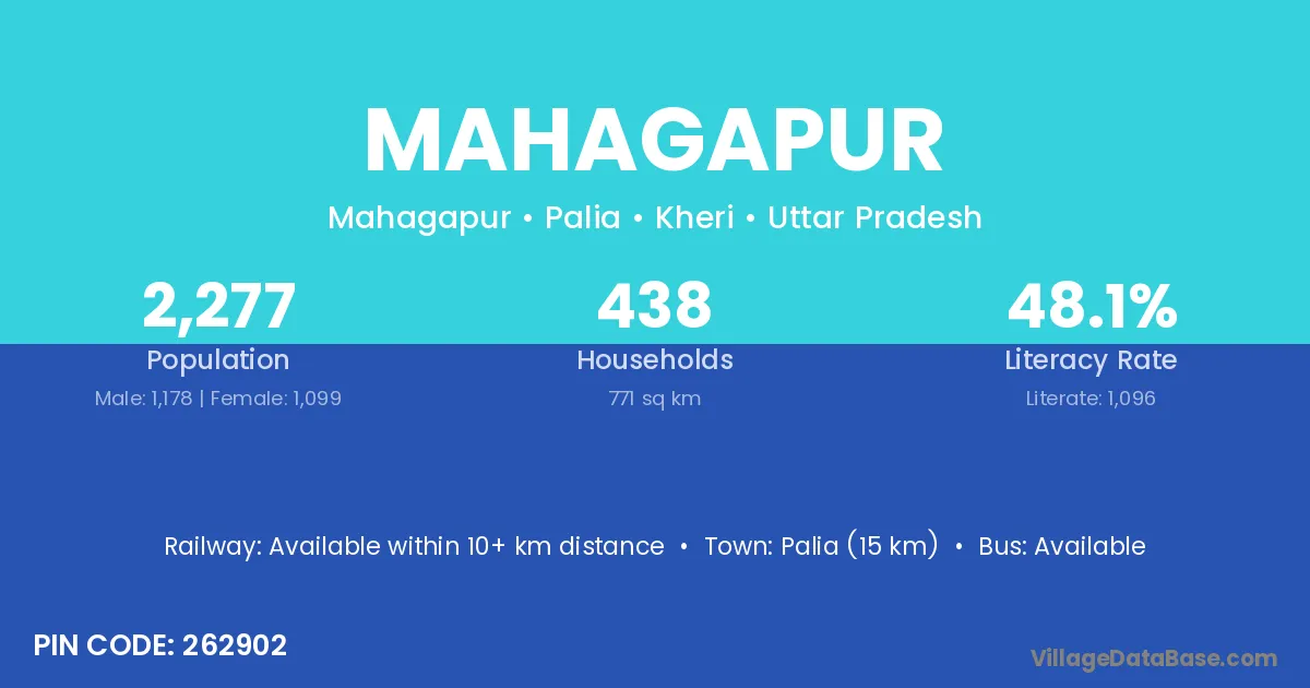 Palia (15 km) is the nearest town to Mahagapur village for major economic activities and is located approximately 15 km away.