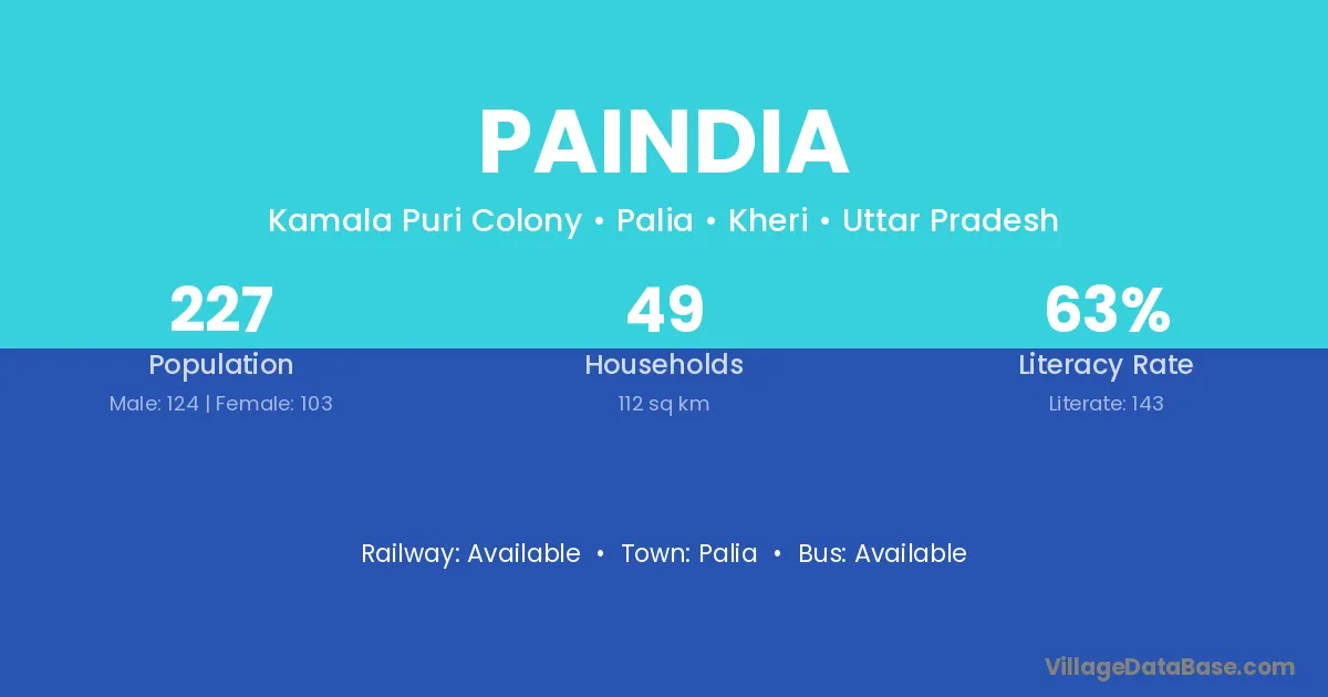 Paindia village has a total population of 227 people, of which 124 are males and 103 are females.
