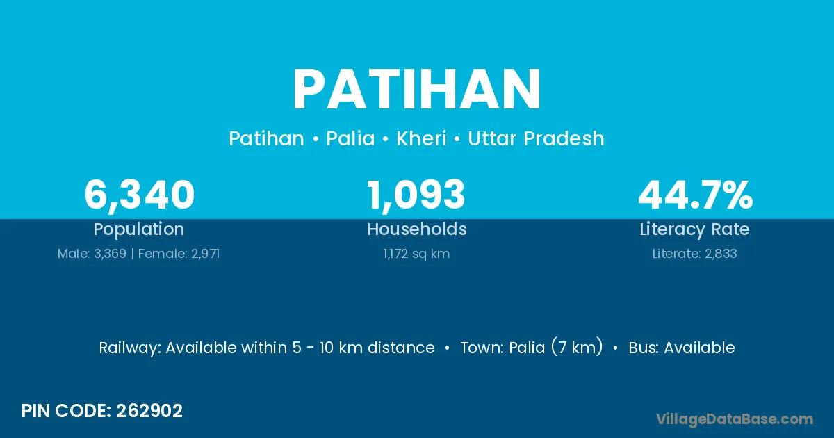 Palia (7 km) is the nearest town to Patihan village for major economic activities and is located approximately 7 km away.