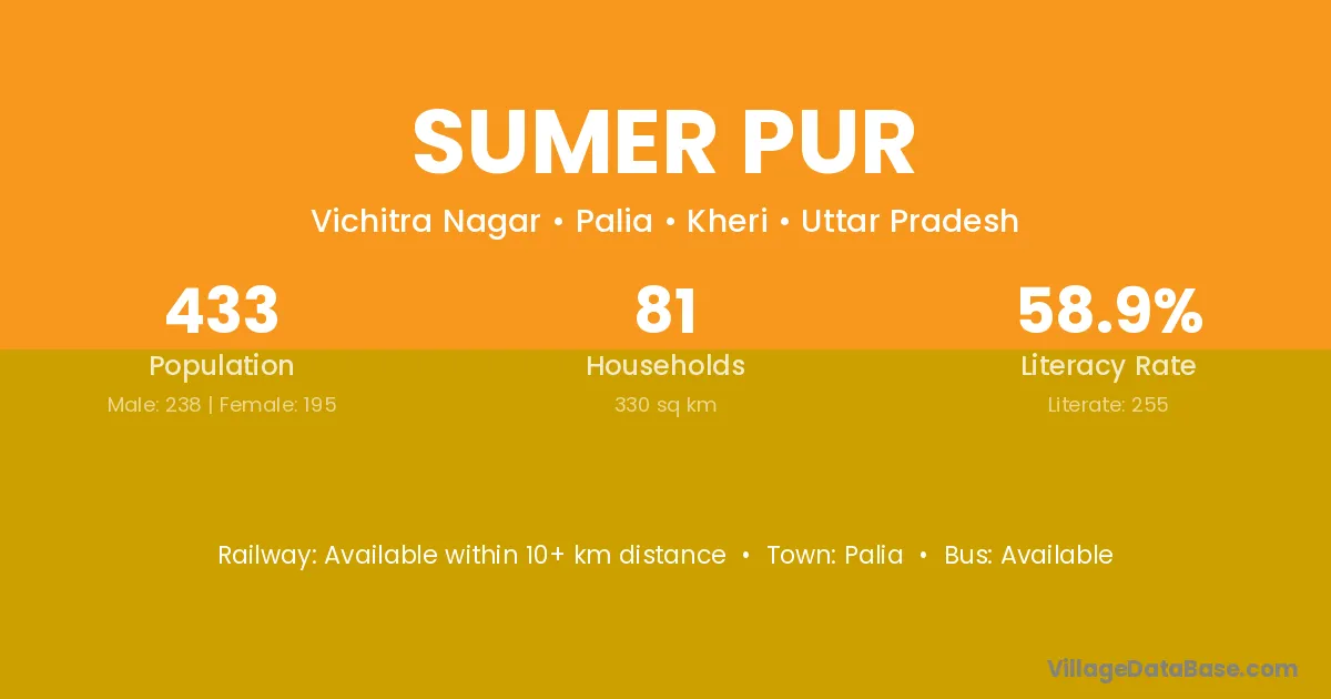 Sumer Pur village has a total population of 433 people, of which 238 are males and 195 are females.