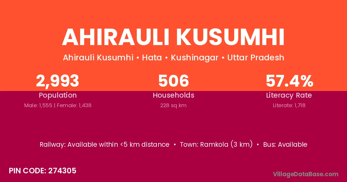 Ramkola (3 km) is the nearest town to Ahirauli Kusumhi village for major economic activities and is located approximately 3 km away.