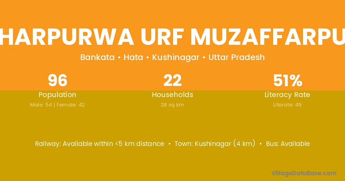 Bharpurwa Urf Muzaffarpur village has a total population of 96 people, of which 54 are males and 42 are females.