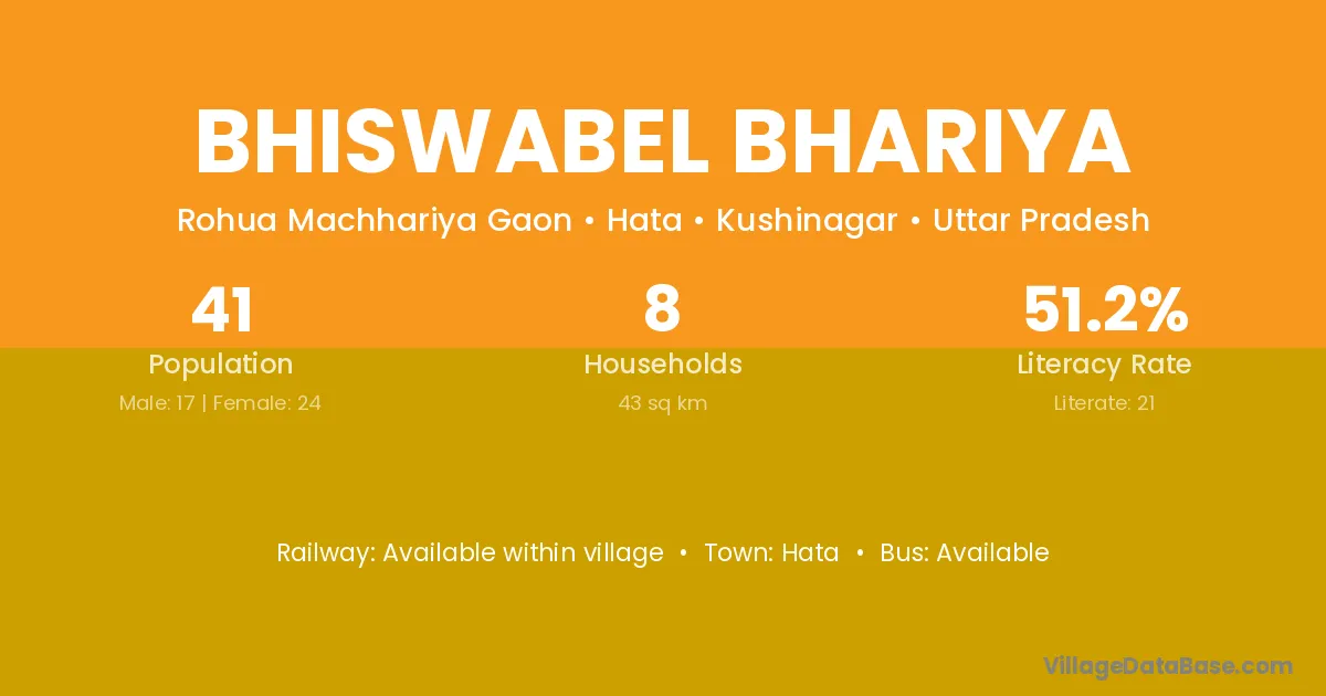 Bhiswabel Bhariya village has a total population of 41 people, of which 17 are males and 24 are females.