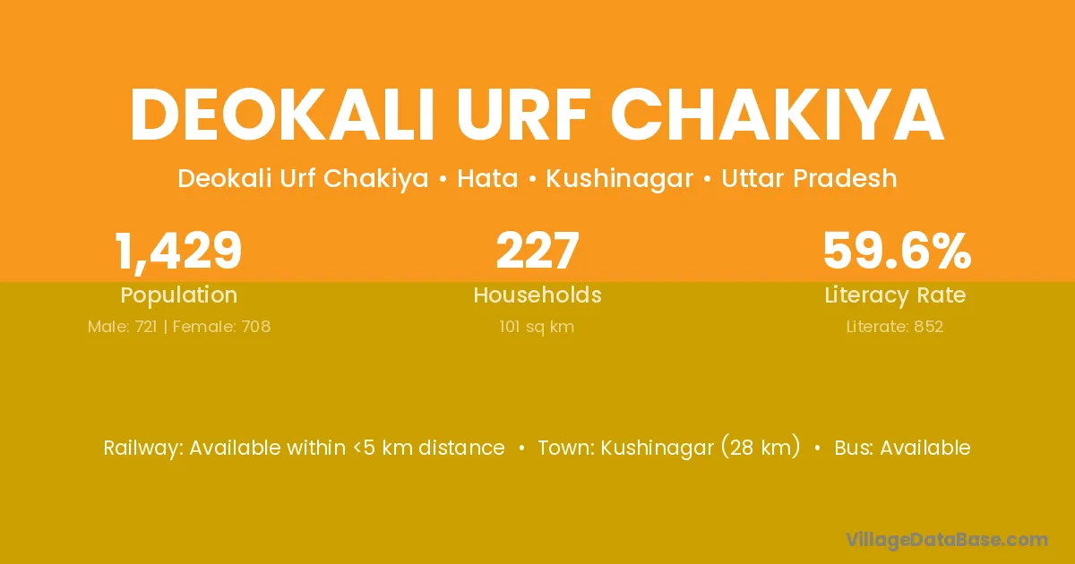 Deokali Urf Chakiya village has a total population of 1,429 people, of which 721 are males and 708 are females.