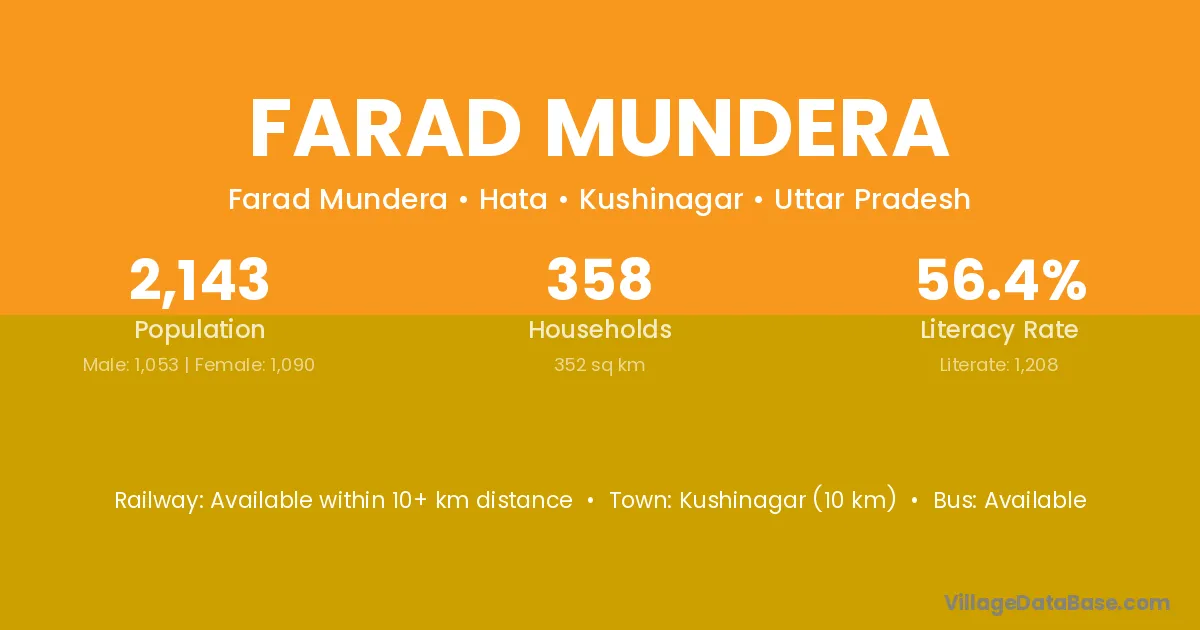 Kushinagar (10 km) is the nearest town to Farad Mundera village for major economic activities and is located approximately 10 km away.