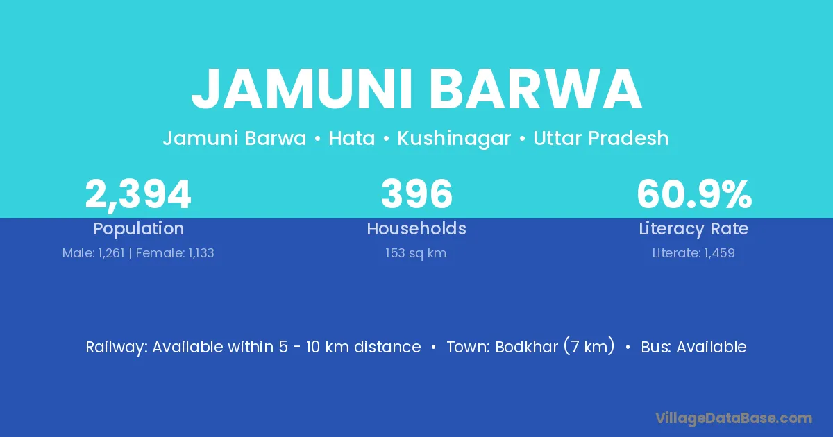 Bodkhar (7 km) is the nearest town to Jamuni Barwa village for major economic activities and is located approximately 7 km away.