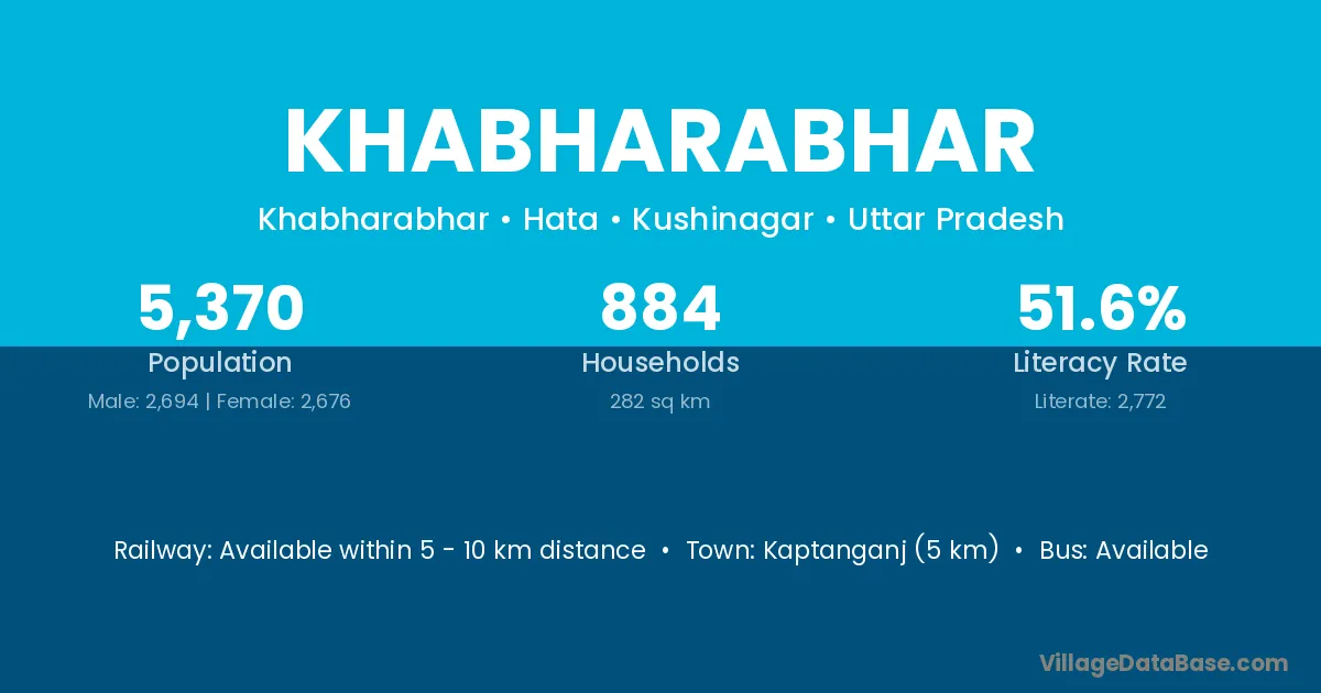 Kaptanganj (5 km) is the nearest town to Khabharabhar village for major economic activities and is located approximately 5 km away.