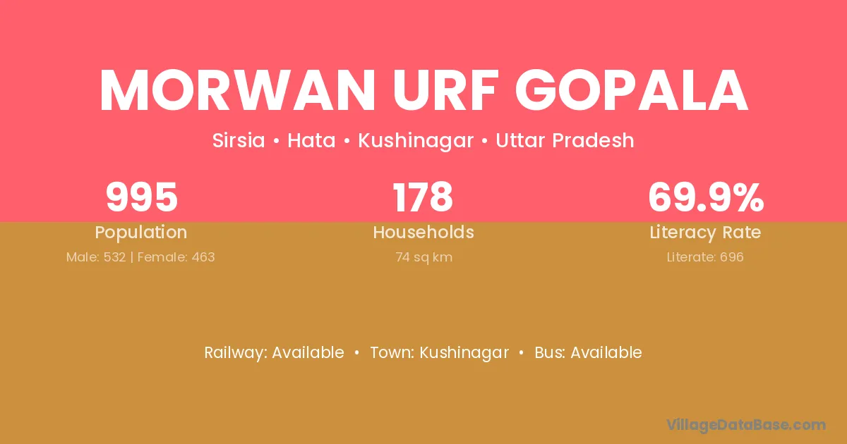 Morwan Urf Gopala village has a total population of 995 people, of which 532 are males and 463 are females.