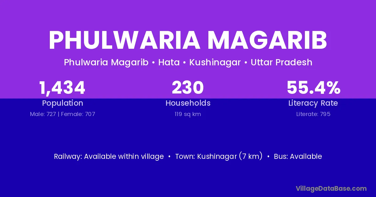 Kushinagar (7 km) is the nearest town to Phulwaria Magarib village for major economic activities and is located approximately 7 km away.