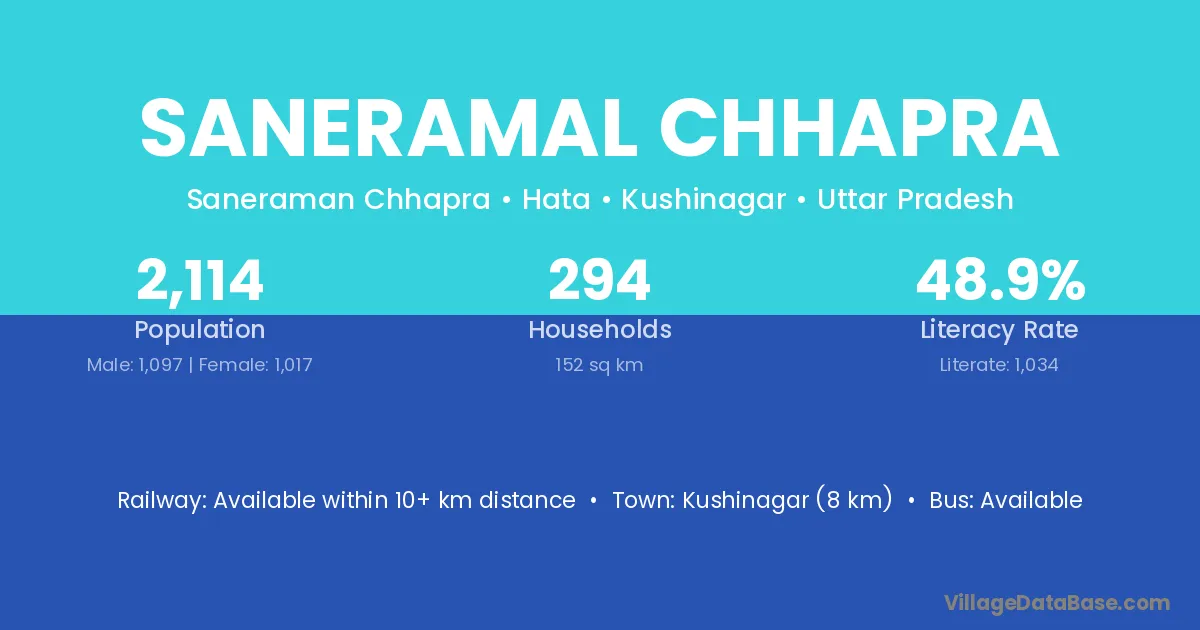 Kushinagar (8 km) is the nearest town to Saneramal Chhapra village for major economic activities and is located approximately 8 km away.