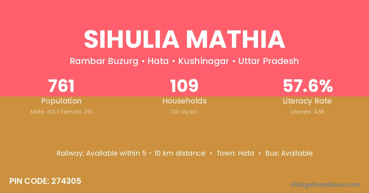 Sihulia Mathia village has a total population of 761 people, of which 410 are males and 351 are females.