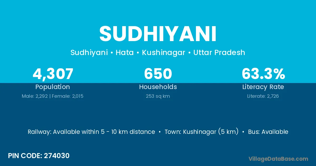 Kushinagar (5 km) is the nearest town to Sudhiyani village for major economic activities and is located approximately 5 km away.