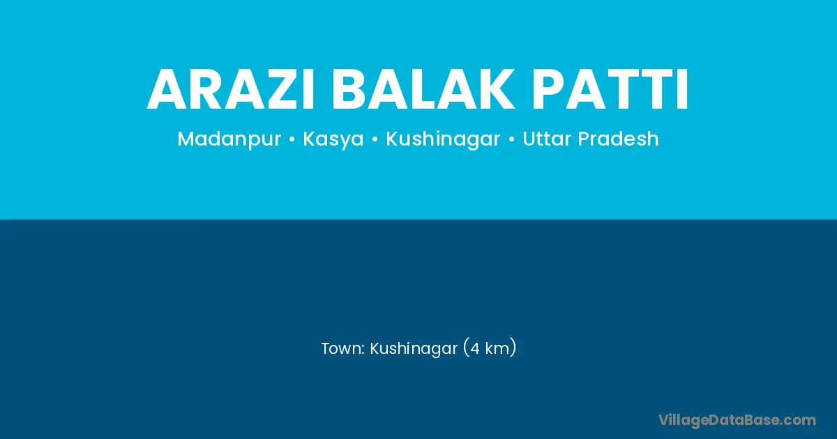 Kushinagar (4 km) is the nearest town to Arazi Balak Patti village for major economic activities and is located approximately 4 km away.