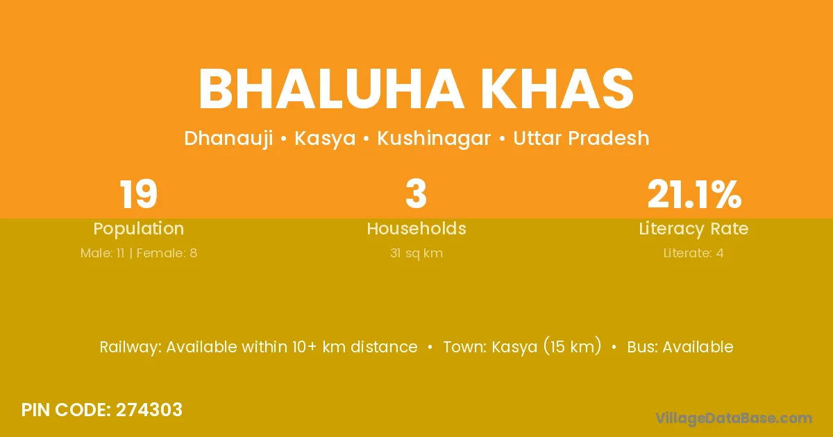 Kasya (15 km) is the nearest town to Bhaluha Khas village for major economic activities and is located approximately 15 km away.