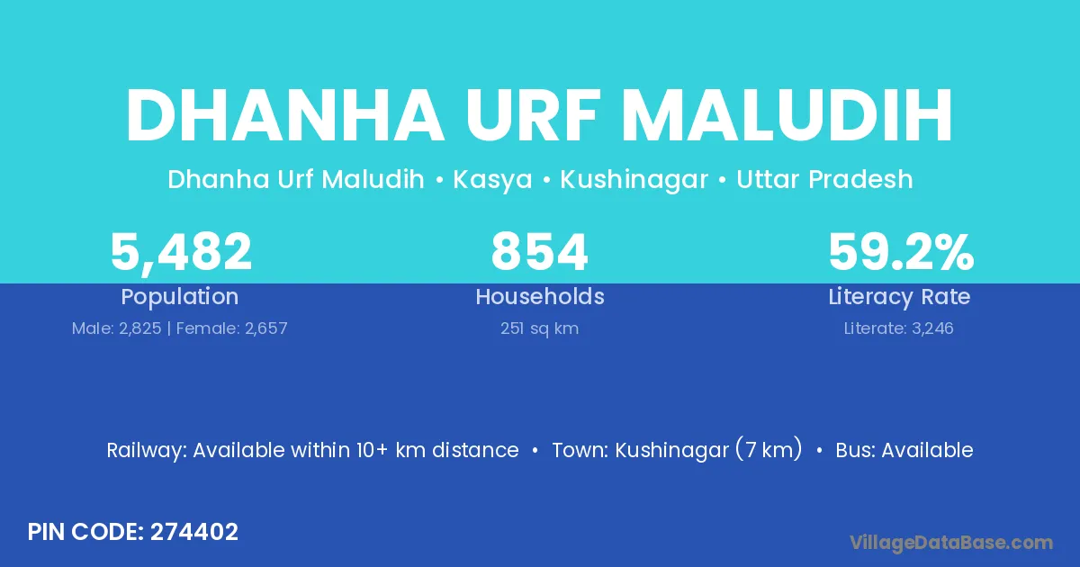 Kushinagar (7 km) is the nearest town to Dhanha Urf Maludih village for major economic activities and is located approximately 7 km away.