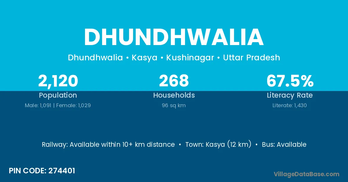 Kasya (12 km) is the nearest town to Dhundhwalia village for major economic activities and is located approximately 12 km away.