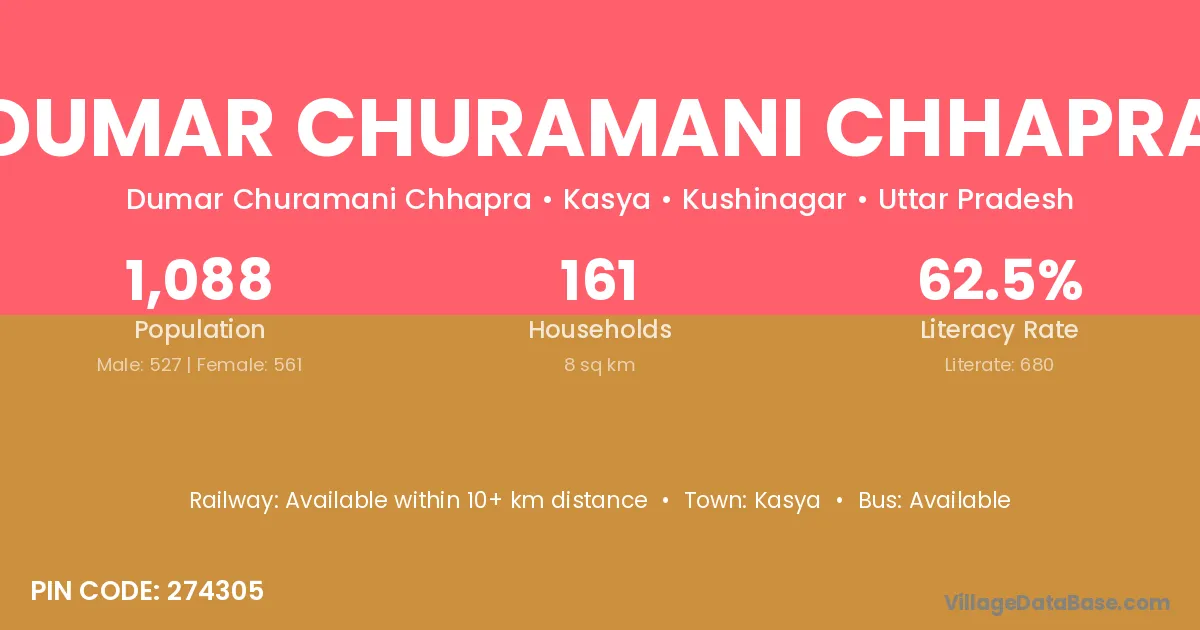 Dumar Churamani Chhapra village has a total population of 1,088 people, of which 527 are males and 561 are females.