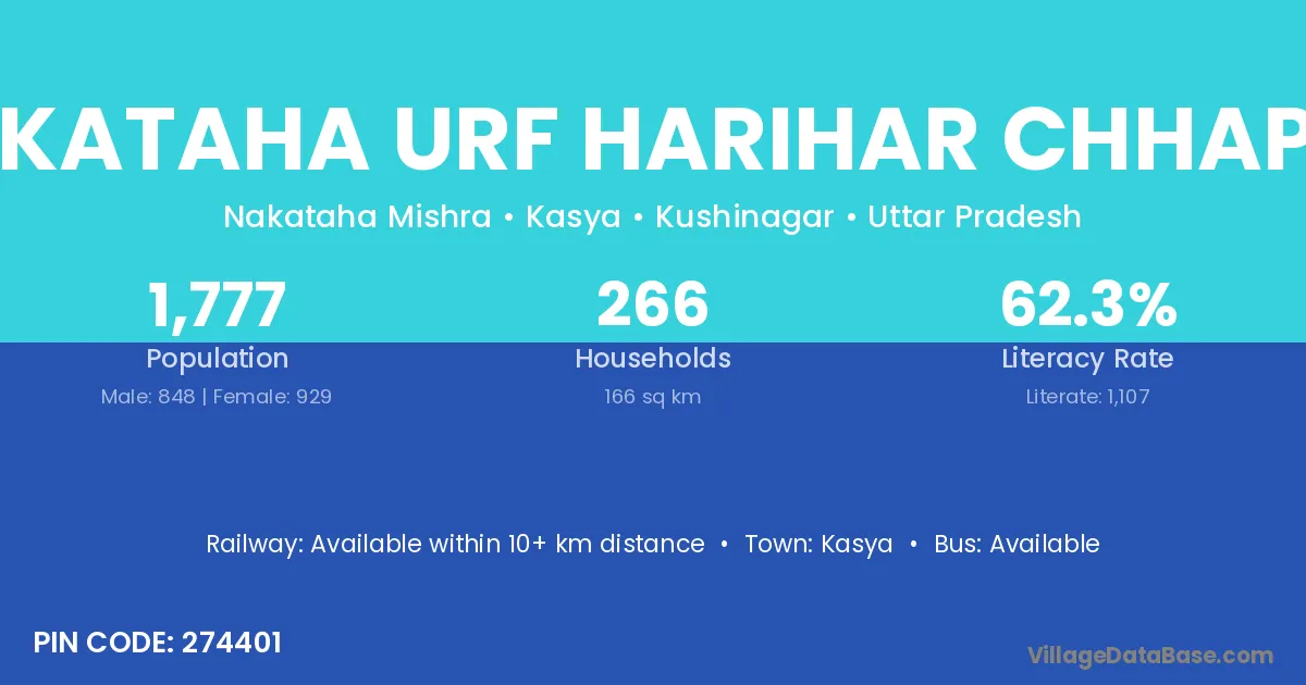 Nakataha Urf Harihar Chhapar village has a total population of 1,777 people, of which 848 are males and 929 are females.