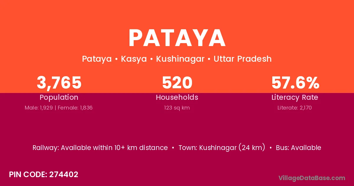 Kushinagar (24 km) is the nearest town to Pataya village for major economic activities and is located approximately 24 km away.