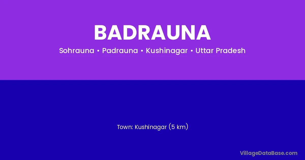 Kushinagar (5 km) is the nearest town to Badrauna village for major economic activities and is located approximately 5 km away.