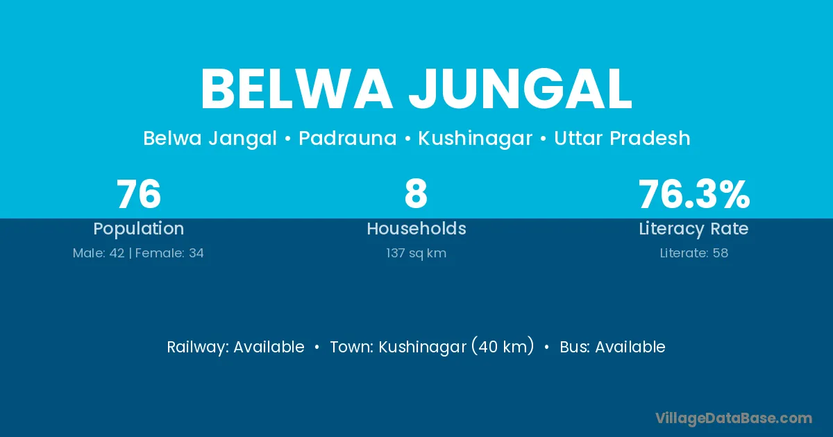 Kushinagar (40 km) is the nearest town to Belwa Jungal village for major economic activities and is located approximately 40 km away.