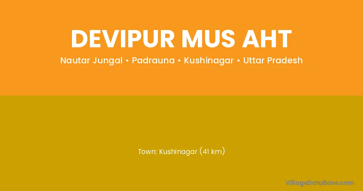 Kushinagar (41 km) is the nearest town to Devipur Mus Aht village for major economic activities and is located approximately 41 km away.