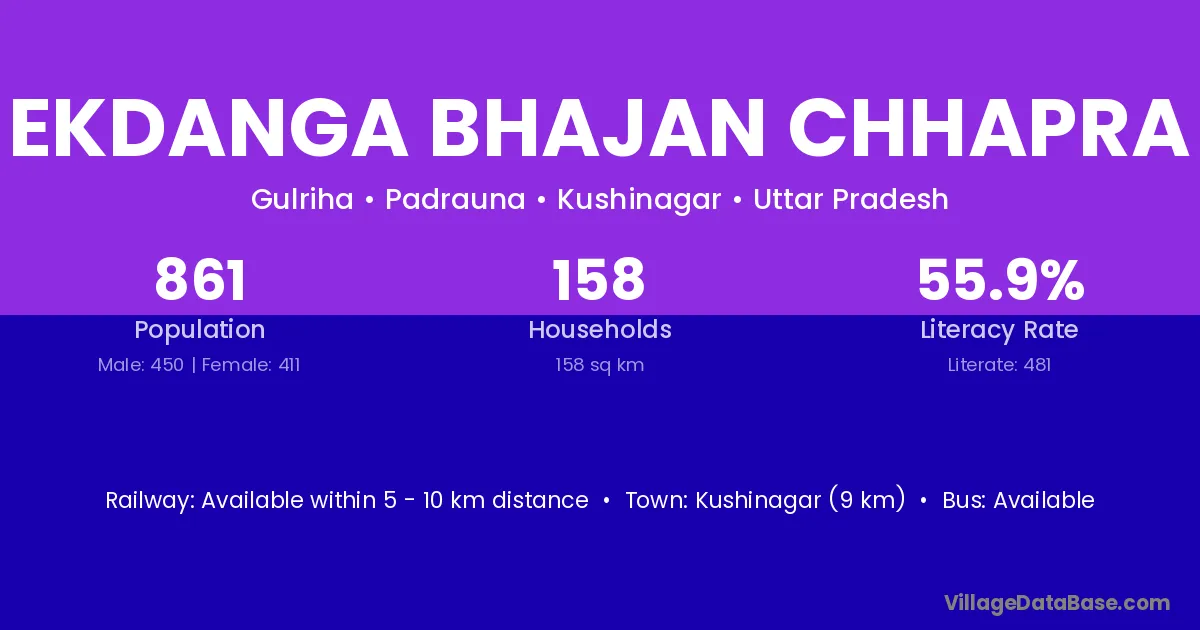 Ekdanga Bhajan Chhapra village has a total population of 861 people, of which 450 are males and 411 are females.