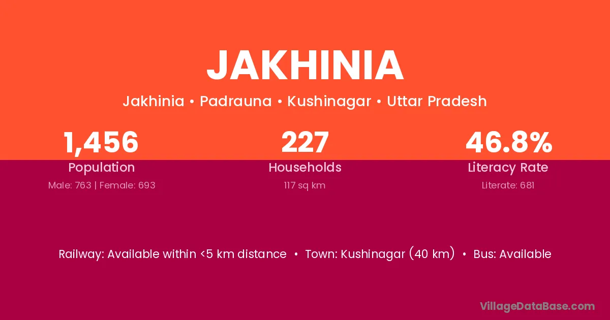Kushinagar (40 km) is the nearest town to Jakhinia village for major economic activities and is located approximately 40 km away.
