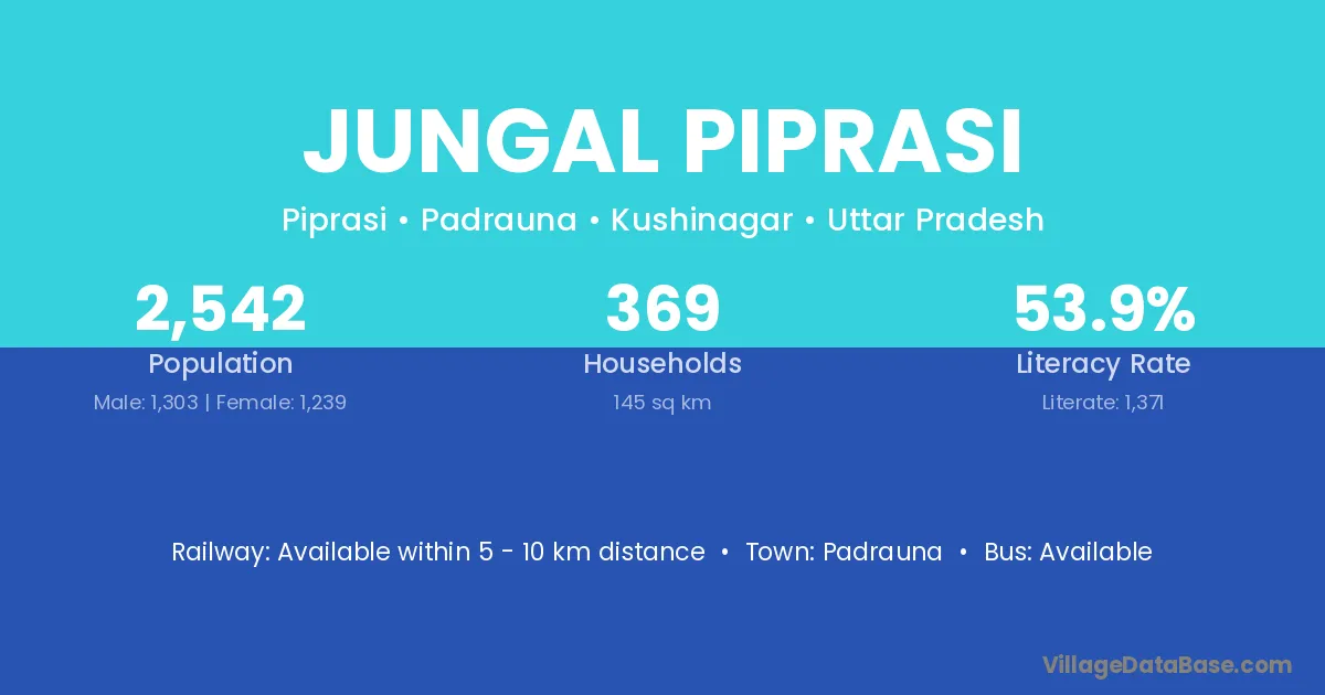 Jungal Piprasi village has a total population of 2,542 people, of which 1,303 are males and 1,239 are females.