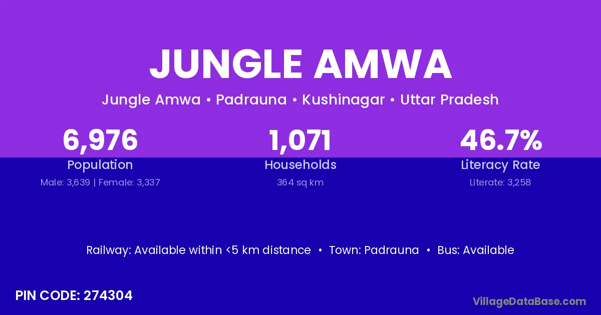 Jungle Amwa village has a total population of 6,976 people, of which 3,639 are males and 3,337 are females.