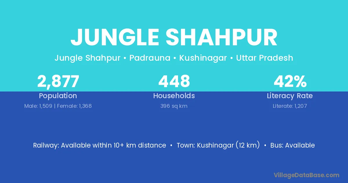 Kushinagar (12 km) is the nearest town to Jungle Shahpur village for major economic activities and is located approximately 12 km away.