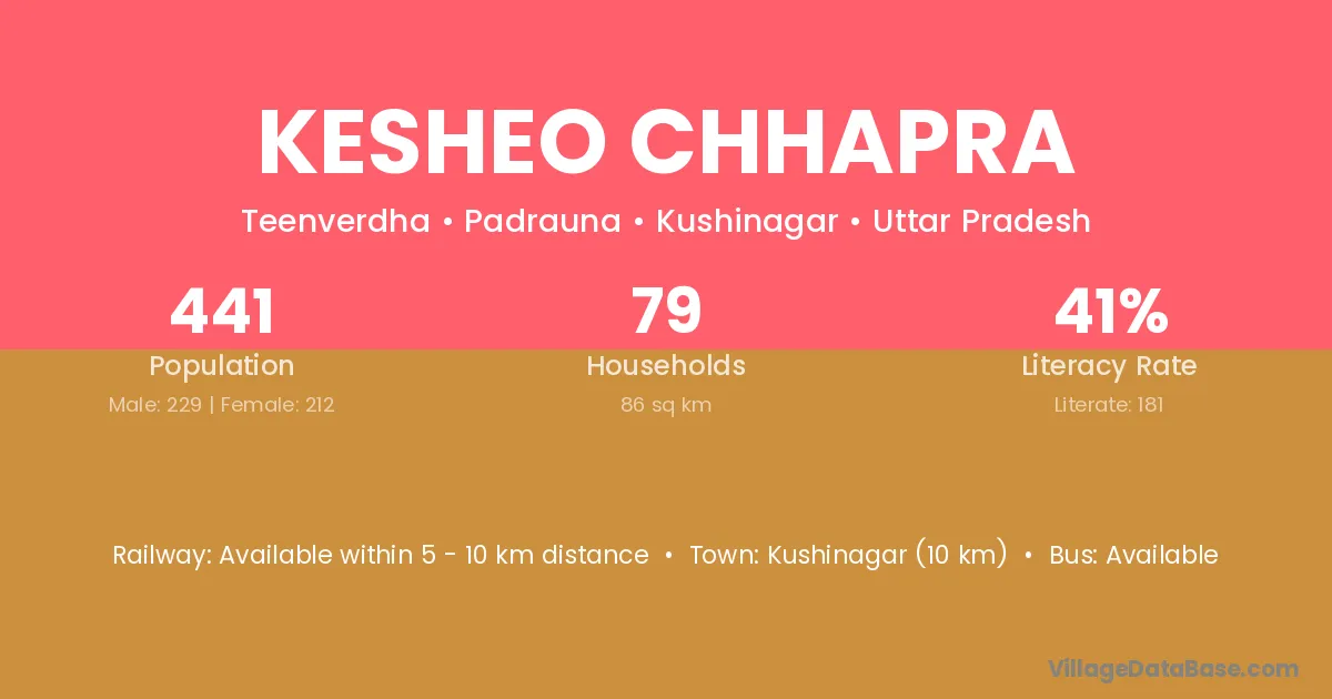 Kesheo Chhapra village has a total population of 441 people, of which 229 are males and 212 are females.