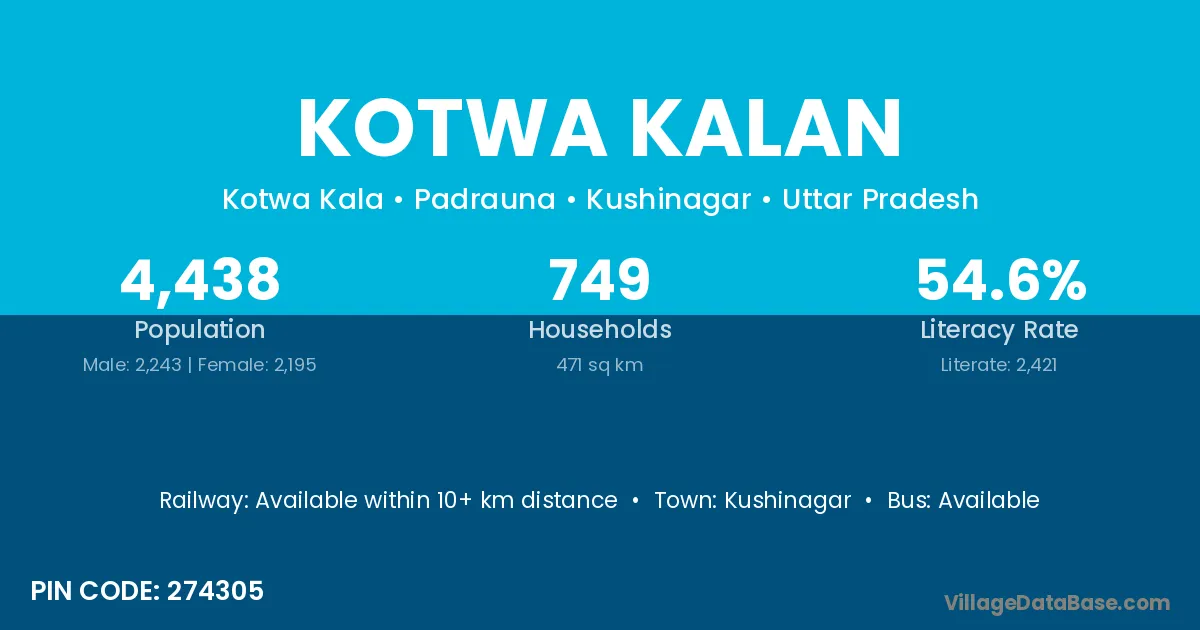 Kushinagar is the nearest town to Kotwa Kalan village for major economic activities