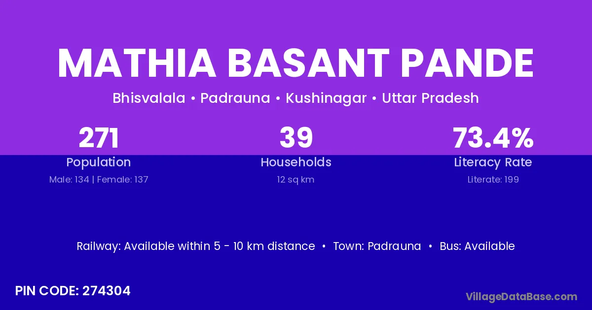 According to Census 2011 information, the village code of Mathia Basant Pande village is 274304.