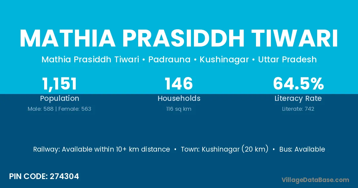 According to Census 2011 information, the village code of Mathia Prasiddh Tiwari village is 274304.