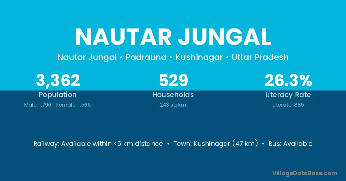Kushinagar (47 km) is the nearest town to Nautar Jungal village for major economic activities and is located approximately 47 km away.