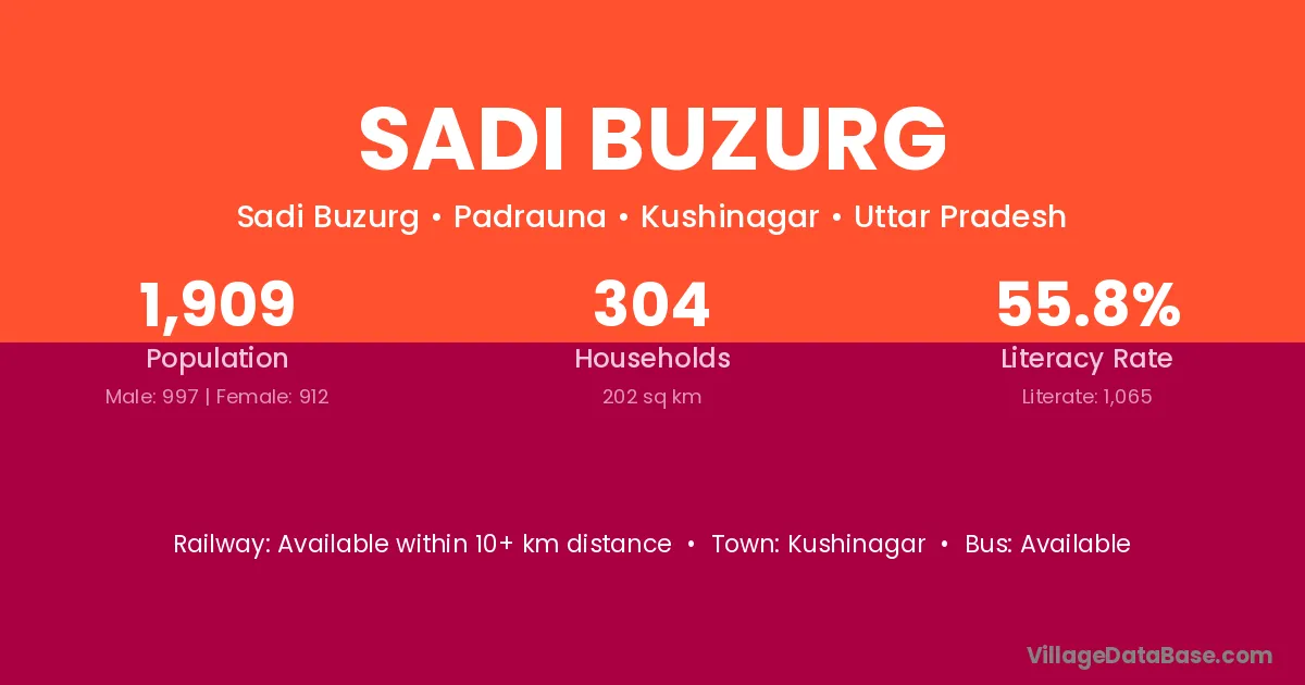 Kushinagar is the nearest town to Sadi Buzurg village for major economic activities