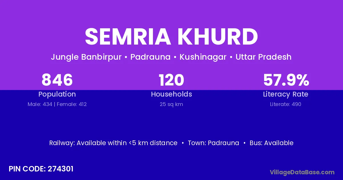 According to Census 2011 information, the village code of Semria Khurd village is 274301.