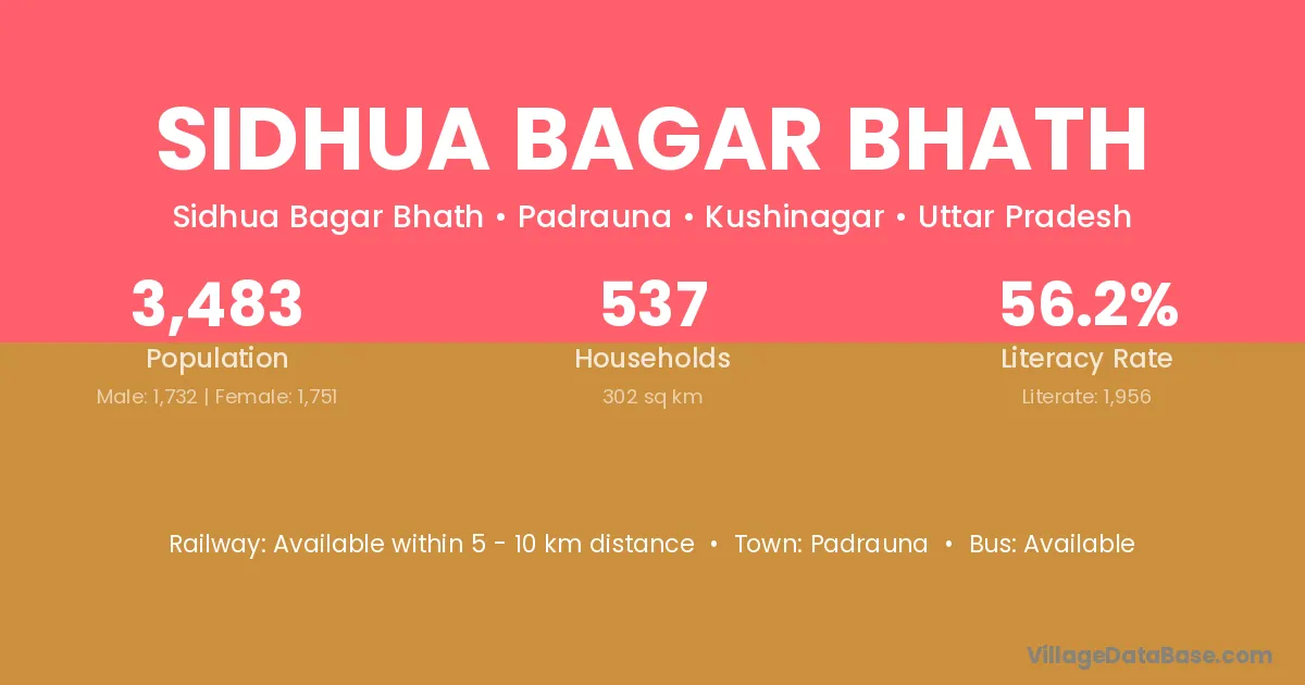 Sidhua Bagar Bhath village has a total population of 3,483 people, of which 1,732 are males and 1,751 are females.